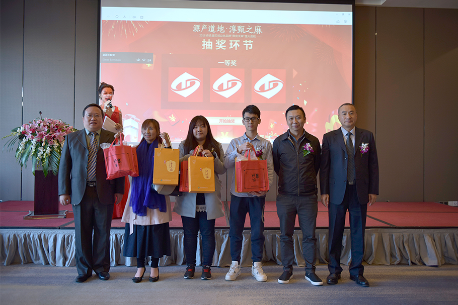 省商务厅、彝良县领导共同给一等奖获得者颁发奖品